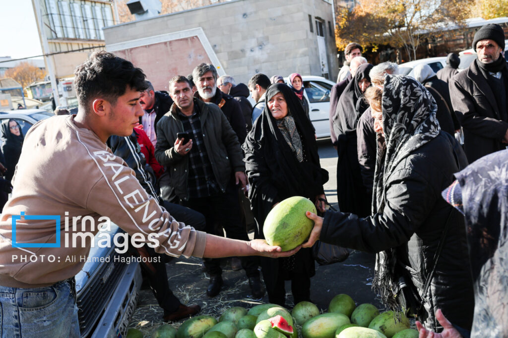 مردم تبریز در آستانه بلندترین شب سال«چیلله گئجهسی»(شب چله) در واپسین روزهای پاییز برای خرید چیلله قارپیزی(هندوانه شب یلدا) میوه، انار، آجیل، باقالی، پشمک و انواع شیرینی به بازار تبریز مراجعه میکنند تا محفل گرم خانه خود را برای میزبانی میهمانان و شب زندهداری در طولانیترین شب سال در سرمای زمستان آماده کنند.علی حامد حق دوست